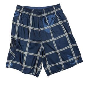Quiksilver Navy Plaid Swim Trunks W/ Cargo Pocket Elastic Waist Size Medium