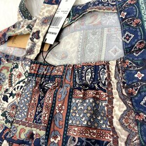Quiksilver Paisley Patchwork Faded Denim Tencel Crop Top Tank Womens XS Beachy