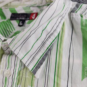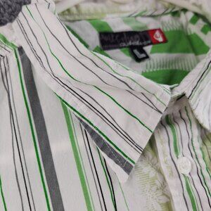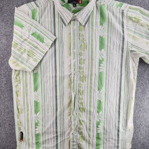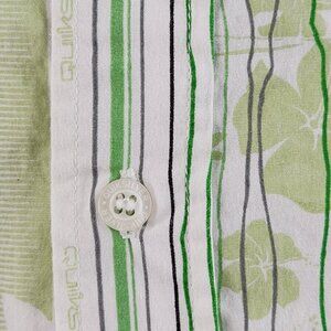 Quiksilver Quicksilver Button Up Shirt Men Large Green Floral Striped Cotton