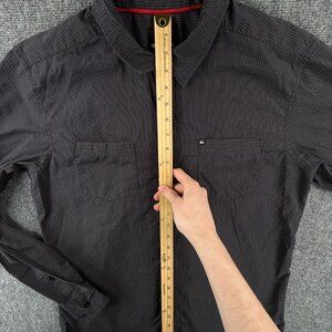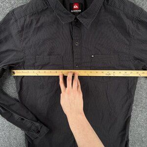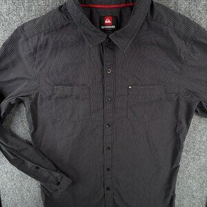 Quiksilver Quicksilver Button Up Shirt Woven Dark Gray Striped Long Sleeve Large