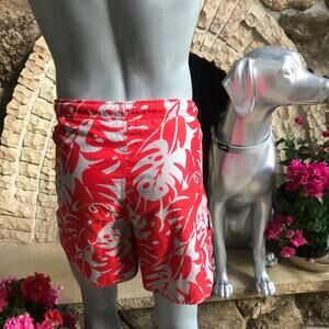Quiksilver Red Leaf Print Cargo Swim Trunks Men's Size Large. Measurements:waist: 22.5, rise: 13.5, inseam: 5