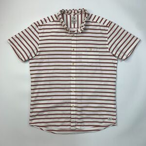QUIKSILVER SHIRT MENS L LARGE MODERN FIT RED STRIPE SHORT SLEEVE BUTTON DOWN