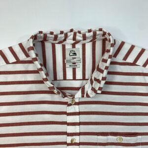Quiksilver Shirt Mens L Large Modern Fit Red Stripe Short Sleeve Button Down