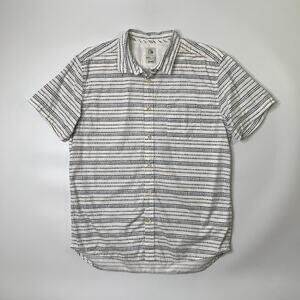 Quiksilver Shirt Mens L Large White Grey Cotton Modern Fit Printed Button Up