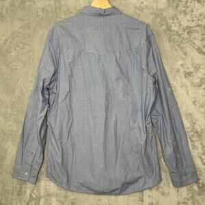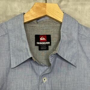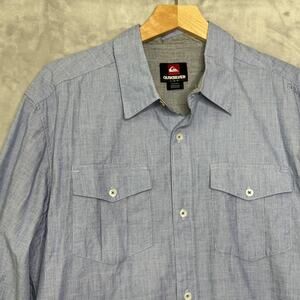 Quiksilver Shirt Mens Large Blue Hankerson Long Sleeve Button Front Roll Tab NEW