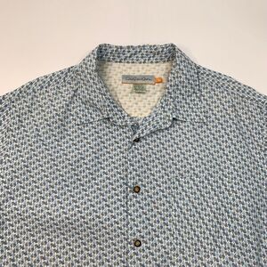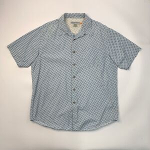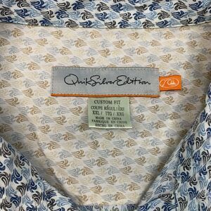Quiksilver Shirt Mens XXL 2XL Custom Fit Blue White Wavy Waves Abstract Cotton