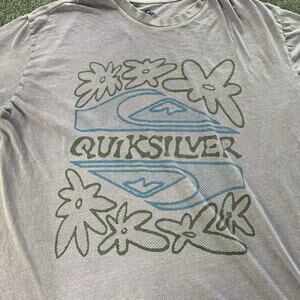 Quiksilver Shirt Unisex Large Purple Floral Surf Tee Baggy Fit Short Sleeve