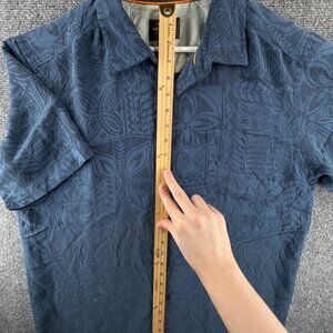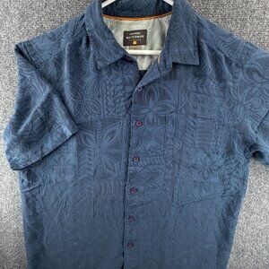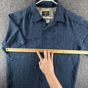 Quiksilver Short Sleeve Polyester Medium Geometric Blue Button Up Skate Mens