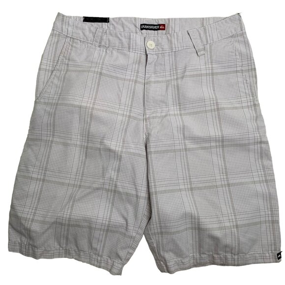 Quiksilver Skater Chino Shorts 32 White Checkered Flat Front Pockets Button Zip