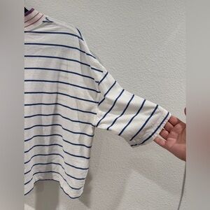Quiksilver Striped Cropped Crewneck Surf Beach White Blue Pink T-Shirt Large