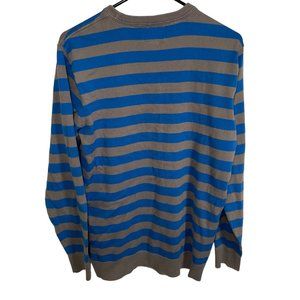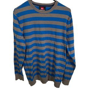 Quiksilver Striped Sweater Mens Medium Blue Gray Knit Pullover Crew Neck