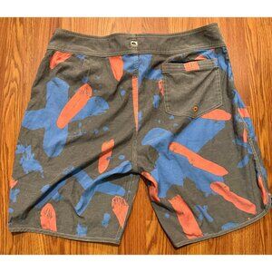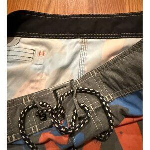 Up for sale is a Quiksilver Surfsilk Scallop Board Shorts Graffiti AOP Mens 33 8" Swim Trunks.