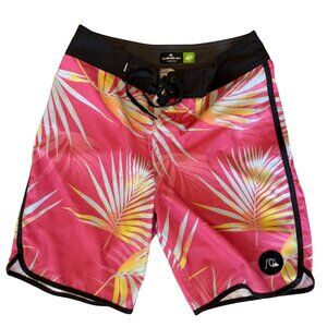 Quiksilver Surfsilk Scallop Board Shorts Surf Pink Black Tropical Size 27