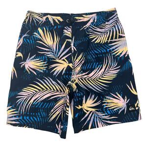 Quiksilver Swim Trunks Shorts Boys Large 14-16 Blue Floral Print Mesh Lined NWT