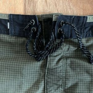 Moderately used Quiksilver trunks in a green pattern. 32 inches wide 20 inches long.