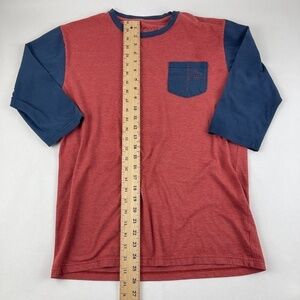 Quiksilver Tshirt Boys Large Red Blue Short Sleeve Pocket
