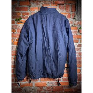 Retro and functional, this Quiksilver navy blue windbreaker jacket is a true throwback piece. Lightweight yet warm, it features a zip-up front, elastic cuffs, drawstring hem, and multiple pockets for utility. The fleece lining makes it ideal for transitional weather.