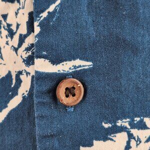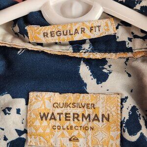 Quiksilver Waterman Button Up Short Sleeve Hawaii Pineapple Floral Blue XL Camp