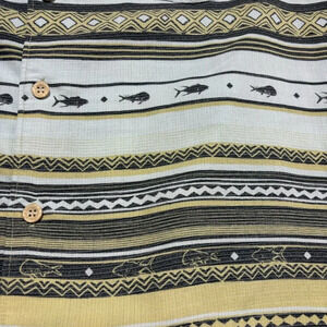 Quiksilver Waterman Mens Button Down Shirt Large Blue Fish Tribal Comfort Fit