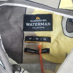 Quiksilver Waterman Shirt Men's Medium Brown Yellow Comfort Fit Short Sleeve NWT
