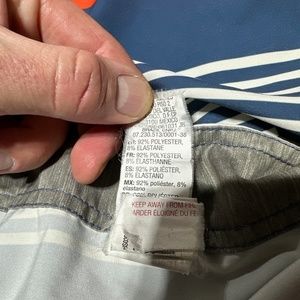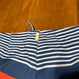 Quiksilver waterman striped stretch boardshorts. Red white and blue. Side pocket with Velcro. Velcro and drawstring waist closure.