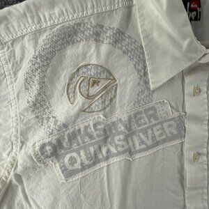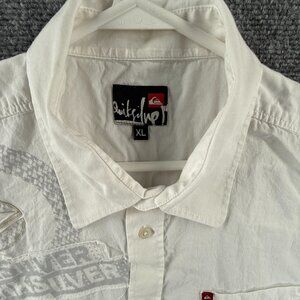 Quiksilver XL Graphic Print Short Sleeve White Shirt Skate Men Pocket Button Up