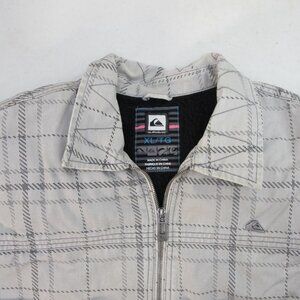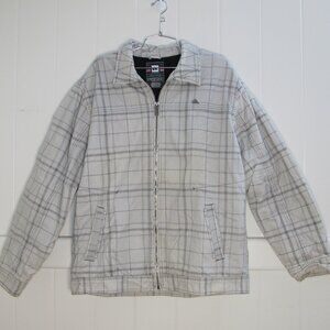 Quiksilver Sherpa Lined Full Zip Cotton Canvas Cream Plaid Jacket