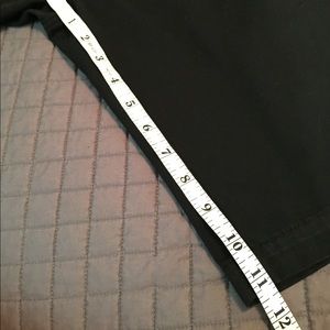 Size 30. Button and zipper closure. Belt loops. Two pockets on the front. Two pockets in the back, one with button. Inseam 11 ¼", Leg opening 10 1/2". Slight wear in thigh, See picture for details.