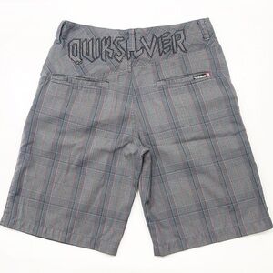 Quiksilver gray plaid shorts Size 32 Five pockets 11 inch inseam Excellent pre owned condition