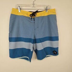 Quiksilver high Line Board Shorts Mens 34 Dryflight Blue Yellow stretch Beach