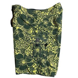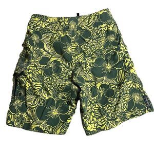 Quiksilver Silver Edition Tropical Hawaiian Green and Yellow Board shorts Swimwear . NWOT