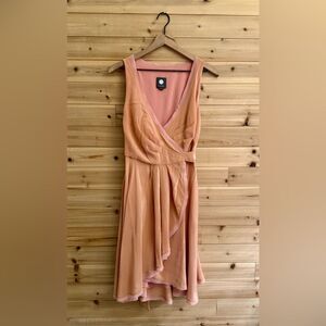 Peach Colored Wrap Front Silk Blend Tank Dress With Ties For Closure