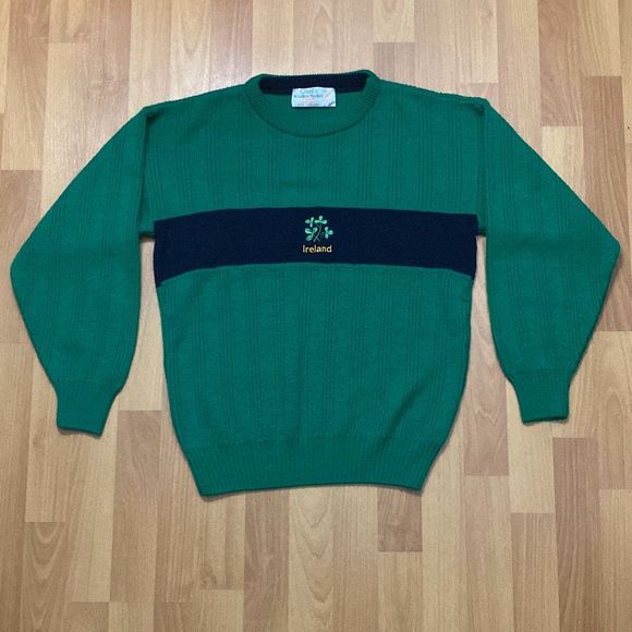 Ireland Hand Knit Green and Blue Hand Knit Cable Knit Sweater