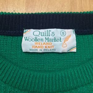 Quill's Woolen Market Ireland Green Blue Hand Knit Cable Knit Sweater Men Small