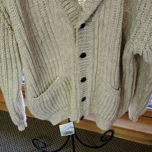 Quill's Woollen Market Ireland Vintage Cream Heavy Grandpa Collar Sz XL Cardigan