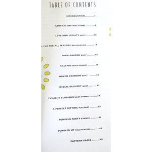 includes 10 projects including quilts, wallhangings, table runner, door topper, placemats, and banner.