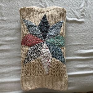 Cozy up in this stylish beige cardigan featuring a unique patchwork star design. Perfect for adding a touch of flair to your wardrobe.