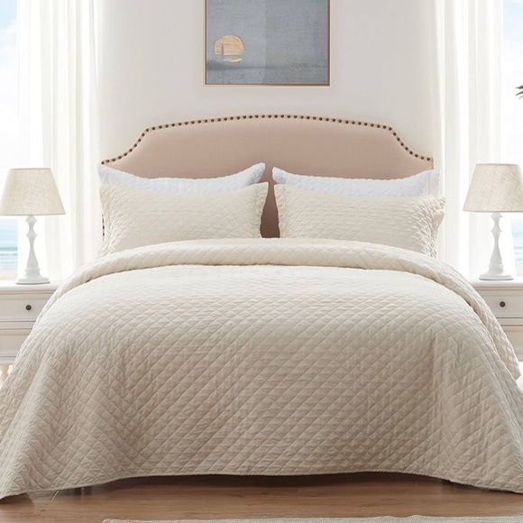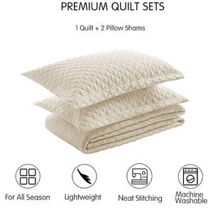 This is a Diamond Quilted Patterned Quit, for a Full/Queen. The color of the Quilt is Ivory, and comes with the full quilt and two pillow shams.
