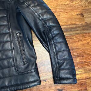 Quilted 100% Lambskin Black Leather Moto Jacket by: PINOPORTE, Men Size Medium