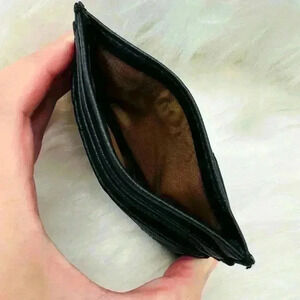 3 slots in front, middle slot for couple bills or more cards and one slot in the back