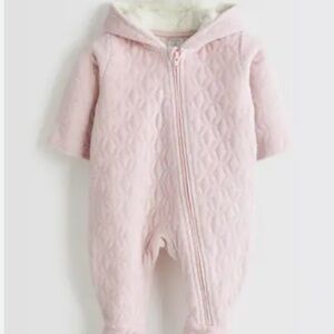 Plush diamond quilting adds to the snuggly charm of this velvety bunting with a cozy lining and a zip-up front for easy changing.