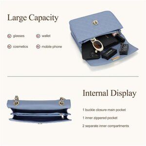 This trendy shoulder bag for women features quilted exterior design with soft vegan leather, gold-tone hardware chain strap and secure anti-theft buckle closure. Easy to carry and light on traveling, this quilted bag is stylish