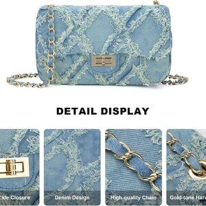 Premium Material - This quilted crossbody bag is made of denim, polyester lining and sturdy gold-tone hardware handle