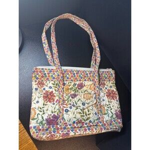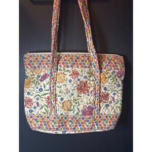 Quilted Floral Tote Bag Cotton Multicolor 15x11