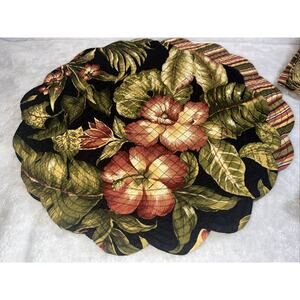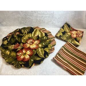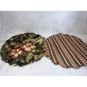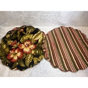 Quilted Floral/Stripped Design Circular Placemats & Napkins. Set of 4 Reversible