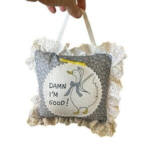 Quilted Grandma core Handstitched Pillow with goose and frilly edges 10x10