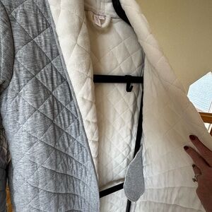 NEW CONDITION. Lovely cozy quilted gray robe, perfect for lounging in style. New condition, unworn. Purchased for our daughter’s first year of college but it got left at home.