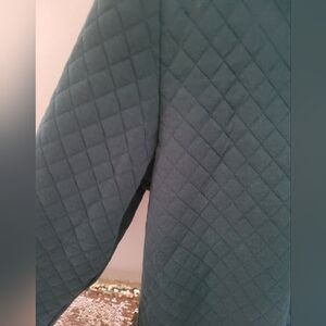 pretty quilted pattern with plaid snap up neckline and elbow patches.
