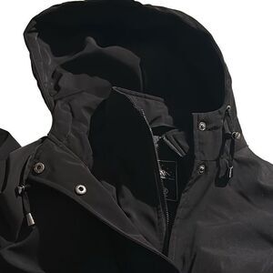 This Hooded Trench Coat is designed to provide reliable protection against the elements. It features a durable, water, and wind-resistant outer shell, zip up torso inside ensuring you stay warm, dry and comfortable in various weather conditions. The coat includes a quilted inside and hood for added warmth and coverage, a classic trench silhouette, and a sleek black finish that pairs effortlessly with any outfit.