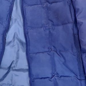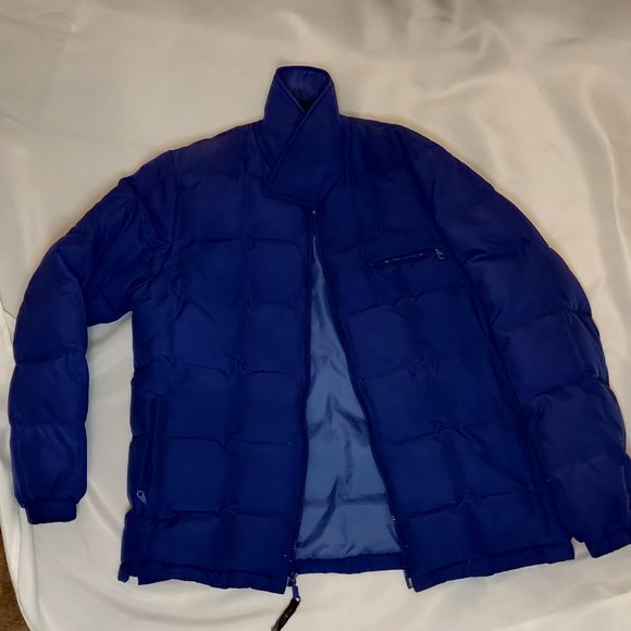 Hip length quilted jacket with plastic zipper and 2 side pockets with zippers. Also a top pocket on left chest with zipper, elastic sleeves. PLEASE ZOOM IN FOR "ASHY PATCHES" from storage on the jacket.